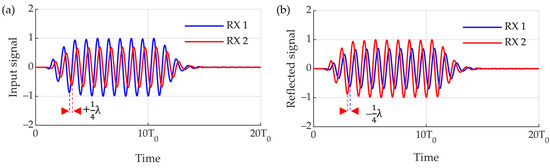 Time delay separation method. (a) Time delay of RX1 and RX2 in case of incident wave (b) time delay of RX1 and RX2 in case of reflected wave.