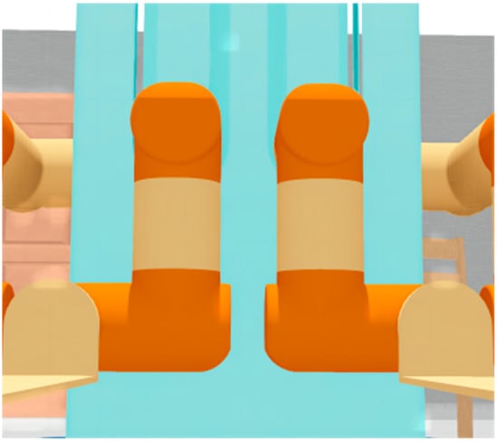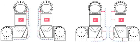 As shown in Figure 2, each manipulator consists of four joints: the lifting joint (prismatic joint), shoulder joint, elbow joint, and wrist joint, and the wrist joint is attached to a replaceable end-effector. The configuration of the joint motor is shown in Table 1. The self-collision in the dual-manipulator system is influenced by the lift joint and shoulder joint: LF1 represents the LF lifting joint motor value, LF2 represents the LF shoulder joint motor value, RF1 represents the RF lifting joint motor value, and RF2 represents the RF shoulder joint motor value.
