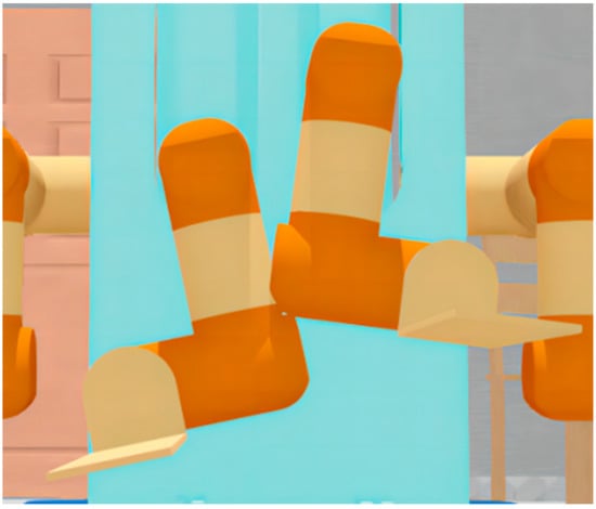 The simulation environment should be as close as possible to the real physical environment, so that the simulation manipulator can reflect the situation of the real manipulator in real time and ensure that the algorithms and data in the simulation environment can be used in the real environment. We directly imported the output model of SolidWorks into Webots to ensure a high degree of unity among the SolidWorks model, Webots model, and real robot. After our measurement and test, there was no visible error between the physical environment robot and the simulation environment robot. Figure 16 shows the Webots simulation model.