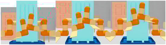According to Equation (6), we can convert the coordinates of the colliders from T2 to the uniform base frame T0, where represents the generated point set of colliders in T0 and represents the generated point set of colliders in T2. Hence, during the movement of the system, we can obtain the point sets representing corresponding colliders in T0 in real-time.
