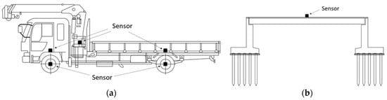 Transportation and logistics are supported by civil structures. Civil structures deteriorate due to daily use and natural disasters. If the deterioration of infrastructures is left unattended, it will lead to structural damage. Structural damage sometimes causes serious accidents, with economic consequences and loss of life. Therefore, infrastructure development is essential, and structure health monitoring (SHM) is attracting attention in many countries [,,]. Infrastructures are maintained and managed through detailed inspections, but inspection costs are high. Therefore, methods focusing on vibration have been proposed as low-cost bridge inspection methods. The suggested methods can be divided into two categories. One is direct monitoring, in which sensors are installed directly on the bridges. This method uses multiple sensors on each bridge to measure vibration data. Based on the measured data, the modal parameters of the bridge are estimated, and the bridge’s state is monitored. However, this method requires the installation of multiple sensors on each bridge, which is costly.