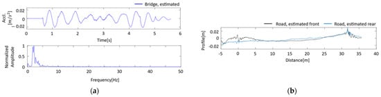 The VBISI method estimation result: (a) bridge vibration in time and domain; (b) road profile.