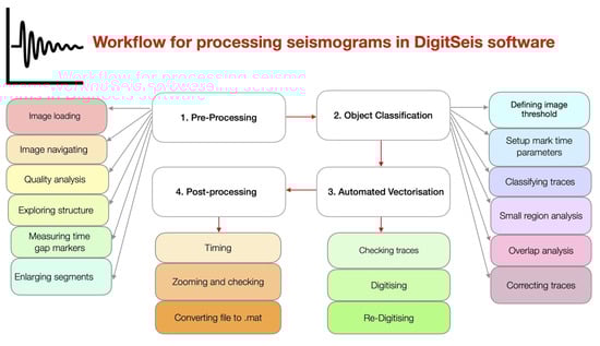 - Bogiatzis, P.; Ishii, M. DigitSeis: A new digitization software for analog seismograms. Seismol. Res. Lett. 2016, 87, 726–736. [Google Scholar] [CrossRef]