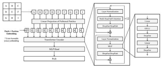 - Dosovitskiy, A.; Beyer, L.; Kolesnikov, A.; Weissenborn, D.; Houlsby, N. An Image is Worth 16x16 Words: Transformers for Image Recognition at Scale. arXiv 2020, arXiv:2010.11929. [Google Scholar]