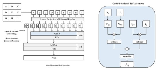 - D’Ascoli, S.; Touvron, H.; Leavitt, M.L.; Morcos, A.S.; Biroli, G.; Sagun, L. ConViT: Improving Vision Transformers with Soft Convolutional Inductive Biases. arXiv 2021, arXiv:2103.10697. [Google Scholar] [CrossRef]