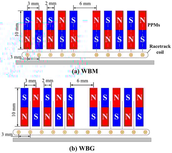 Structure diagrams of the WBM and WBG EMATs in experiments.