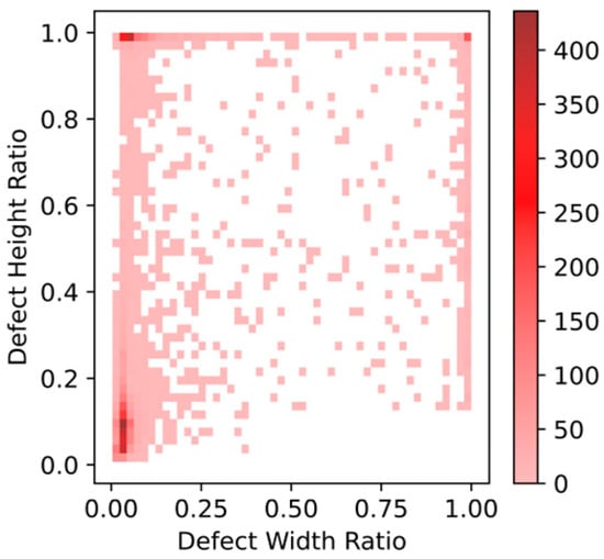 Figure 9 illustrates the proportion of fabric defects in the entire fabric area. It can be seen that in the fabric data set, most of the defects are small-sized defects, and the features are difficult to capture, and the aspect ratio of the defects is widely distributed, so detection is difficult.