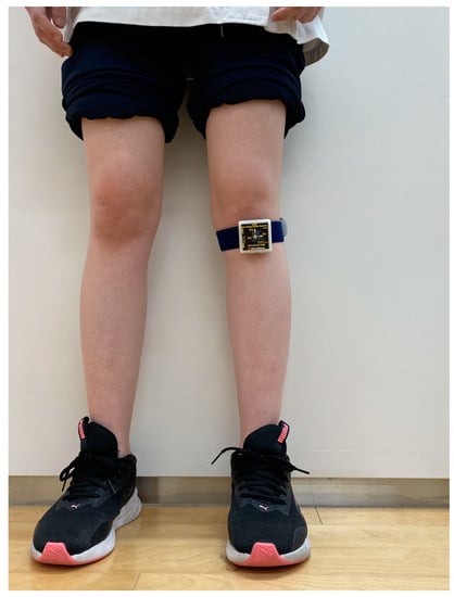 The IMU was equipped with a three-axis acceleration sensor (range: ±60 m/s2) and a three-axis gyroscope (range: ±2000 degrees/s) (MVP-RF8; MicroStone, Nagano, Japan). The IMU was secured to the tibial tuberosities on the affected side using elastic belts (Figure 1). Acceleration in the anteroposterior, mediolateral (ML), and vertical directions, and angular velocity in the sagittal, frontal, and horizontal planes were measured at a sampling rate of 200 Hz. The obtained data were wirelessly transmitted to a personal computer via Bluetooth.