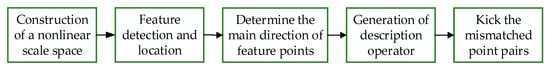 We introduce the RANSAC algorithm on the basis of the traditional KAZE algorithm, which can further eliminate mismatched point pairs. The flow of the KAZE algorithm based on RANSAC is shown in Figure 3.