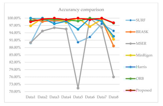 In order to judge the stability of the matching algorithm more intuitively, we compared the accuracy of several algorithms in a line chart (Figure 9).