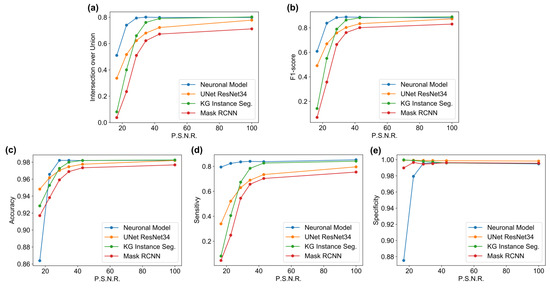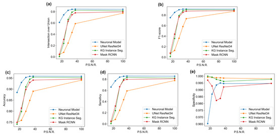 Specificity values of the algorithms for different PSNR values of adversative noise (ISBI 2009).
