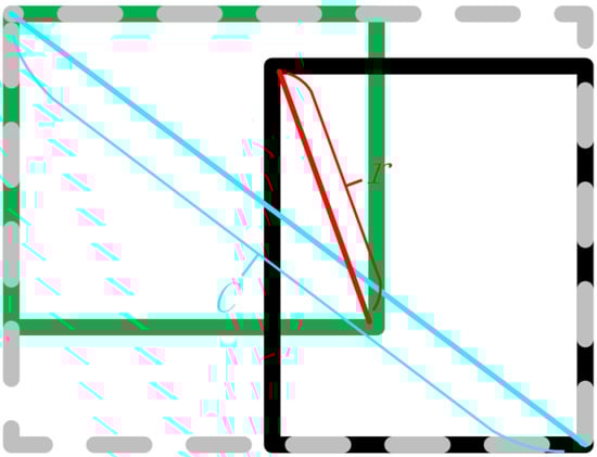 Based on the above considerations, the box information selected is the diagonal distance between the two boxes. As shown in Figure 6. Where r is the diagonal of the rectangle intersecting the two boxes, and c is the diagonal of the smallest bounding rectangle of the two boxes.