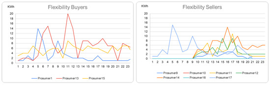We set up a scenario in which the prosumers and their data are used to transact flexibility and transfer the tokens using the group structures defined using the secure MPC technique. Figure 2 shows the energy profiles of the buyers and sellers taking part in the scenario.