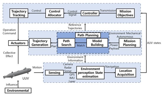 A UUV is a type of submarine that performs underwater missions. Advantageously, UUVs can be built in a much smaller size and at a lower cost than can traditional submarines because they are unmanned. However, operating UUVs in highly volatile underwater environments is a formidable challenge [67]. Because the UUV performs its mission underwater, it must maintain the scheduled route even in environments that are difficult to operate owing to high currents or heavy water pressure. Its devices are easily corroded because of seawater. Moreover, the utilization of radio signals and satellite navigation systems is limited.