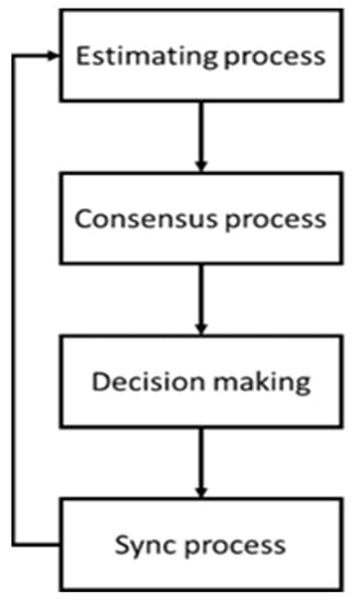 The iterative estimate and consensus processes must be used alternatively to be able to adjust to changes in swarm density in real time. The robots will perform these processes at different speeds due to the randomness of the process completion time, though, when the robot instantly switches to the estimating process to estimate the new value as soon as the consensus process is complete. The opinions of the robots in the swarm may no longer be consistent if this procedure is out of phase among them.