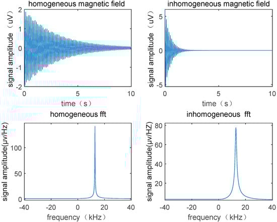 Figure 4, when the homogeneity of the magnetic field being test is poor, the FID signal decays faster, and the decay of the FID signal is primarily influenced by the time
