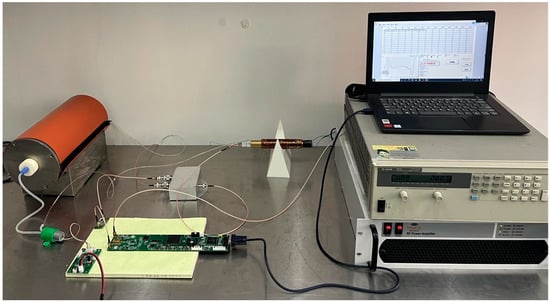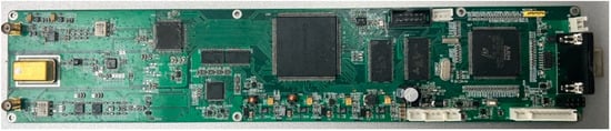 The function of the microprocessor is to facilitate communication between the upper and the lower computer, coordinate the upper computer protocol and communication with the FPGA, and process information. The main function of the FPGA is to control the pulse transmission circuit and signal reception process, demodulate and filter the signal output from the ADC, and store the data. The pulse transmission circuit directs the DDS chip through the FPGA to generate a sequence of waveforms with different parameters such as frequency, amplitude, phase, echo time, and pulse duration. After the echo signal is amplified by a low-noise amplifier and VGA (Variable-gain Amplifier) circuit, it is received by the ADC, transmitted to the FPGA, and then internally extracted by the signal demodulation processing module. The real spectrometer is shown in