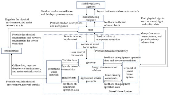 Miandashti et al. [] proposed that privacy risks in smart home systems mainly originate from the interactions between people, products, and the environment, secondary to the risks existing within the product components. When identifying specific risk scenarios, the user and environmental factors must be considered. According to the hierarchical control structure of the ‘user-environment-smart home’, the privacy and security risk characteristics are separately analysed from the perspective of the user, product, and environment to provide the basis for subsequent risk analysis.