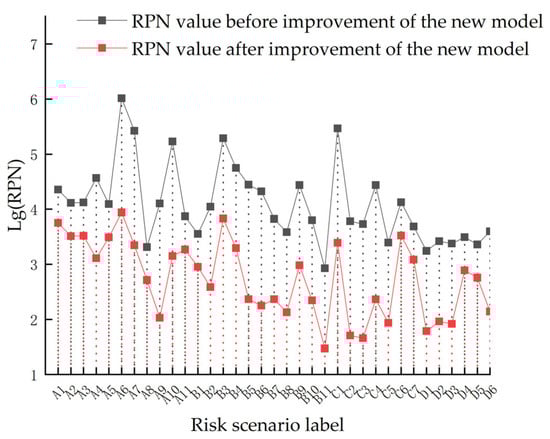 The SOD scores for each risk scenario under the traditional FMEA approach and the SOD scores under the STPA–FMEA approach are presented in Table 2. The SOD scores include the original RPN scores for each risk scenario and the magnitude of the impact of user factors, physical network, and social environment on the risk.