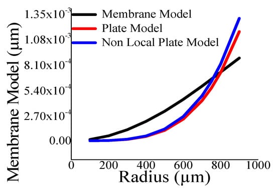 While being actuated by a DC bias in the membrane model, which considers Mason’s analysis, the circular diaphragm’s displacement profile is given by the following: