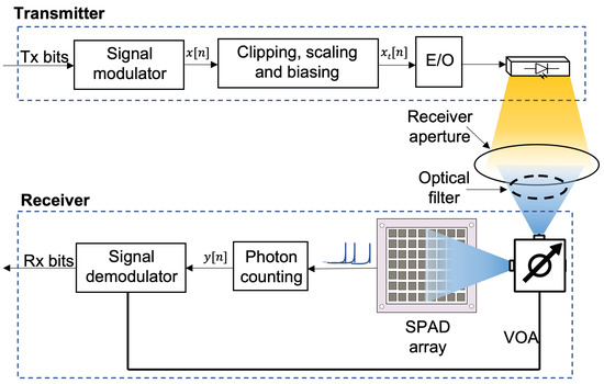 - Huang, S.; Safari, M. SPAD-Based Optical Wireless Communication With Signal Pre-Distortion and Noise Normalization. IEEE Trans. Commun. 2022, 70, 2593–2605. [Google Scholar] [CrossRef]