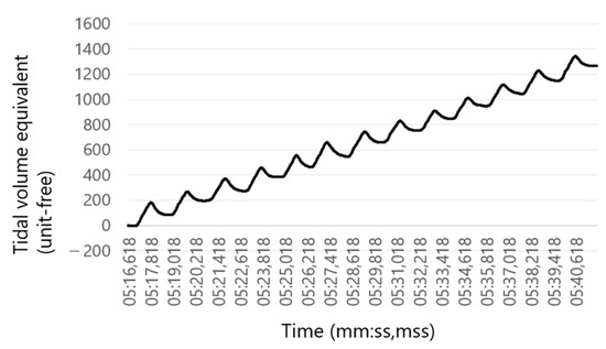 Second, we integrated the pressure values to obtain the volume equivalent [33] (Figure 5). In addition, a baseline correction was performed to compensate for the shift of the zero point (Smith, personal communication) which is caused by an insufficient BTPS-approximation.