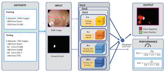 - Tomar, N.K.; Ibtehaz, N.; Jha, D.; Halvorsen, P.; Ali, S. Improving Generalizability in Polyp Segmentation using Ensemble Convolutional Neural Network. In Proceedings of the 3rd International Workshop and Challenge on Computer Vision in Endoscopy (EndoCV 2021) Co-Located with the 18th IEEE International Symposium on Biomedical Imaging (ISBI 2021), Nice, France, 13 April 2021; Volume 2886, pp. 49–58. [Google Scholar]