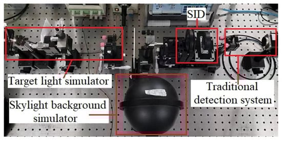 Optical detection techniques are widely used in remote sensing, searching, tracking, detecting, imaging, and other fields because of their advantages of short wavelength, high energy concentration, and high signal-to-noise ratio (SNR) detection. However, the skylight background is strong in the daytime, and it is easy to cover dim and weak targets, meaning daytime detection is always the weakness for the application of optical detection techniques (especially for ground-based equipment). To overcome the influence of the daytime skylight background, researchers have been exploring some methods to suppress the skylight background, mainly including the field of view (FOV) constraint [1], spectral filtering [2,3,4], polarization filtering [5,6], etc. However, these methods have their shortcomings. For the FOV control method, the drawbacks are that the FOV is too small and that the suppression of the strong skylight background in the FOV is poor. For the spectral filtering method, the drawback is that when the spectral characteristic of the target is similar to that of the skylight background, it is difficult to suppress the skylight background without lessening the target light. For the polarization filtering method, it is generally necessary to estimate in advance the discrepancy of the polarization characteristics between the target light and the skylight background, while the specific implementation is very complex because the polarization changes according to the orbital motion, the attitude change of the target, the solar movement, etc.