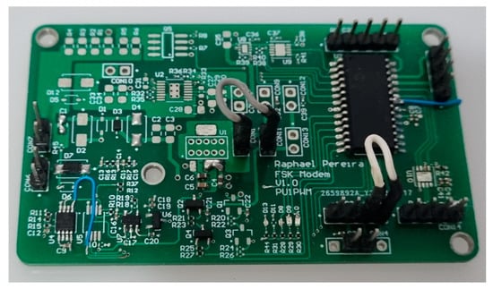 In order to make the system more flexible, a single card capable of fulfilling all the functions of both a modulator and demodulator was developed. Hence, it carries within itself the possibility of receiving or transmitting signals. Thus, only one electronic board was designed, where only the components of the respective functionalities were assembled. The board is shown in Figure 4.