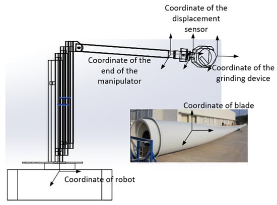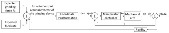 - The grinding device performs a profiling movement on the blade’s surface when it is not in contact with the blade and the grinding force is zero, after which time the measurements of the pressure sensor and the manipulator in each attitude are collected;