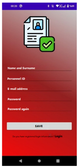 It is possible to create a new account by logging in from the login screen and switching to the next screen or another screen. On this screen, the person logs into the system using the ID and password information given to them or the information they create themselves. The login information of authorized personnel is previously saved in the Firebase database. The user’s login information is verified with Firebase Authentication. After the login information is verified, the message “Login Successful” appears on the screen. The login screen is given in Figure 17.