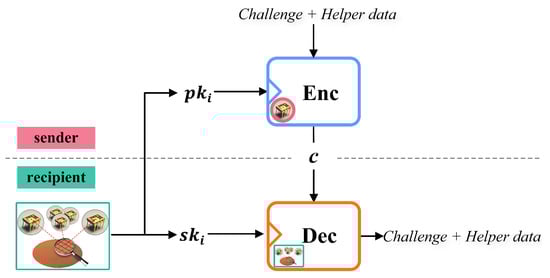 Encrypt the Challenge and HelperData with the public-key encryption scheme.