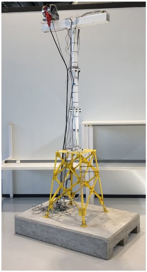 The use case is a scaled wind turbine tower prototype installed on a jacket-type structure, which is fixed to the ground (Figure 2). The main specifications of the prototype can be seen in Table 1. An electromagnetic inertial shaker, considered as part of the system, is placed on top of the prototype attached to a rotating platform to excite the structure in different directions (Figure 3) and frequency components (<25 Hz). The specifications of the shaker used can also be seen in Table 1.