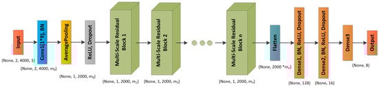 After passing through several successive multi-scale residual blocks, MSRPLNet can extract deep features of signals from different space radiation sources. The number of multi-scale residual blocks used depends on the learning ability of MSRPLNet. Finally, we use a flatten layer and three fully connected layers with different numbers of neurons to integrate the extracted abstract features and obtain the output features.