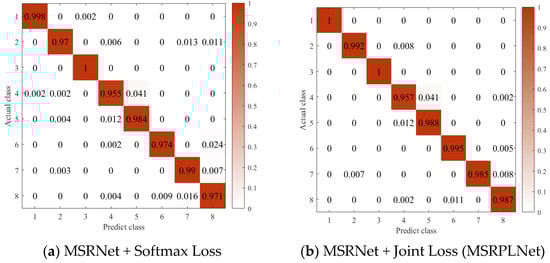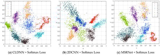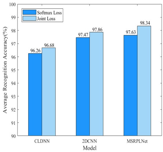 The individual recognition of radiation sources is essentially a pattern recognition problem [4]. In the early stage, the methods based on experience-driven strategy [5,6,7,8,9,10,11] take the leading position. They usually use traditional signal processing and expert feature-matching algorithms instead of recognition algorithms, which is difficult to achieve the expected accuracy in complex electromagnetic environments [12]. Recently, data-driven strategy based on massive data and deep learning has become popular. A lot of studies [13,14,15,16,17,18,19,20,21] have confirmed that deep learning has a strong feature extraction ability, which makes it superior to traditional methods in many recognition tasks. However, these works are mainly based on improved or new proposed network models. When Softmax Loss is used to train these models, they can only learn the inter-class separable features [22]. It may force us to increase the complexity of data preprocessing and network models in exchange for improving the recognition effect. Therefore, further enhancing the intra-class compactness of features may be a better choice.
