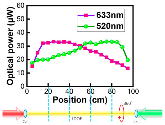 Experimentally measured optical powers by a power meter at different positions along the LDOF.
