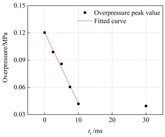 where Δp is the peak overpressure at the nozzle outlet and its unit is megapascal. ti is the initiation interval, and its unit is millisecond.