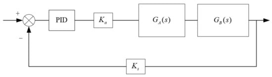 The servo amplifier can be simplified to a proportional link, and we let this proportional link be . The input displacement signal is the voltage value, the range is ±10 V, and the input current range of the electro-hydraulic servo valve is 0–±40 mA.
