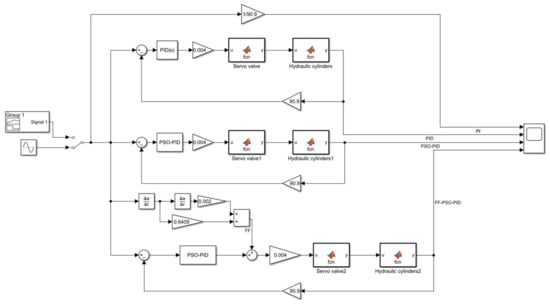 In this section, the performance of the conventional PID algorithm, PSO-PID, and FF-PSO-PID are compared through three different displacement input signals with the control objective of making the electro-hydraulic servo system respond quickly and track the reference trajectory with satisfactory tracking accuracy.