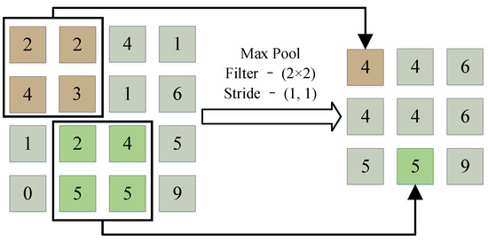 The typical CNN structure consists of three types of layers, which are the convolutional layer, pooling layer, and fully connected layer. The process of pooling operation is illustrated in Figure 2. According to task requirements, these layers are combined in different ways to form different CNN models, such as LeNet-5 [36], ResNet [37], EfficientNet [38], and 1-D CNN [39].