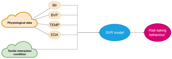 To evaluate the effectiveness of the SVR model, we input the original physiological data into the model and assessed the resulting prediction of BART scores using MAE. The SVR model’s performance was only slightly better than that of the mixed effects model, with the data flow shown in Figure 6.