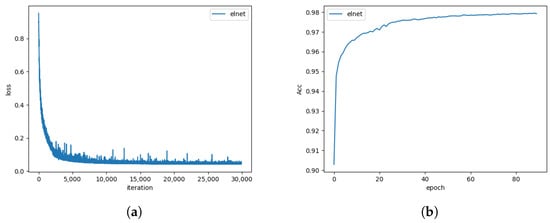 Training loss (a) and accuracy (b) results of ELNet on MaSTr1325 dataset.