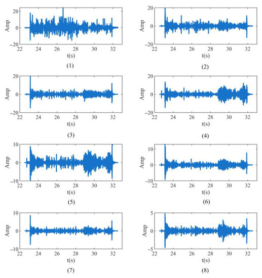 - The filtered wavelet coefficients are transformed by inverse wavelet transform to obtain the reconstructed signal after threshold denoising. The mathematical model of the reconstructed signal y*(t) is shown in Equation (4).