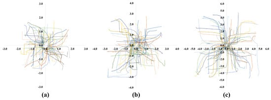 One hundred transportation trajectories of an object in different sizes of SLEs: (a) m environment; (b) m environment; (c) m environment.