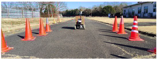 Driven by rapid socioeconomic development and urbanization, young populations are leaving rural areas to work in other industries in cities [1]. In Japan, more than 60% of the farmer population is over the age of 65. Japan’s rapidly aging agricultural society will not only reduce Japan’s food self-sufficiency but also lead to a downturn in domestic agricultural business, which may reduce revenues [2]. To solve the problems of an aging population and labor shortages, many machines have been developed to assist in agricultural production. With the development of this machinery, agriculture has become less dependent on human labor. Especially in the areas of extensive farming and fixed planning areas, advanced automation has the opportunity to bring time efficiency and high economic benefits because of timeliness and efficiency in operation. Crops that require pesticides and herbicides can affect human health, and machinery is a necessary alternative to ensure flexibility and safety [3]. Pesticide spraying is essential; however, there is a high risk of chemical contamination due to overapplication of conventional speed sprayers. From flowering to fruiting, pesticide spraying needs to be repeated several times to protect from pest invasion. In some cases, farmers also spray pesticides manually, and pesticides can enter farmers’ bodies through their respiratory systems, affecting their health. Furthermore, most orchards in Japan are conventional, and farmers control the height of tree growth according to their operations, causing limited operating space in the orchard, and the branches not only scratch the machinery but also block the driver’s view, thus making it unfavorable to operate medium- and large-sized machinery in orchards due to hampered navigation. Therefore, compact and unmanned agricultural machinery has the potential to overcome the problem of maneuvering with an appropriate autonomous guidance system.