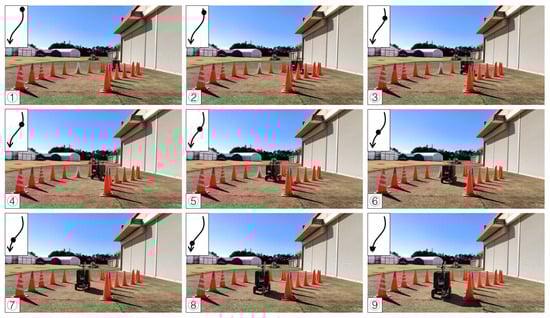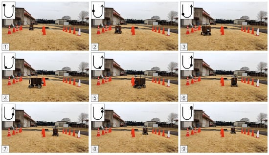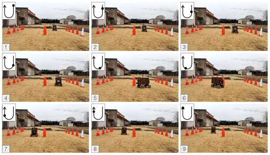 Images of vehicle operation on grass (left turn). Subfigures (1–9) in order were the vehicle’s movement path.
