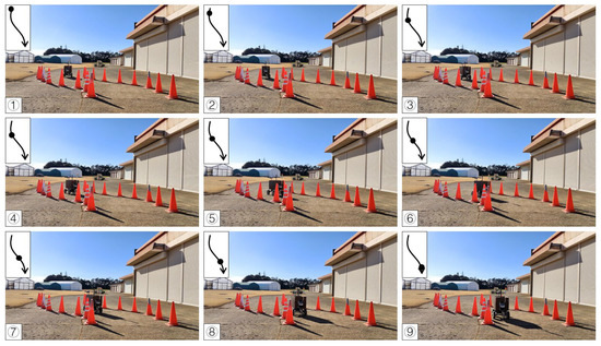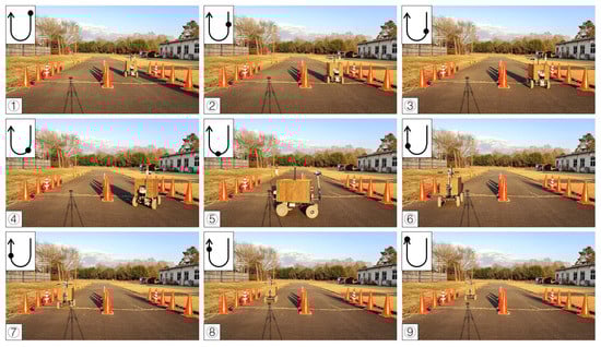 Images of vehicle operation on grass (right turn). Subfigures (1–9) in order were the vehicle’s movement path.