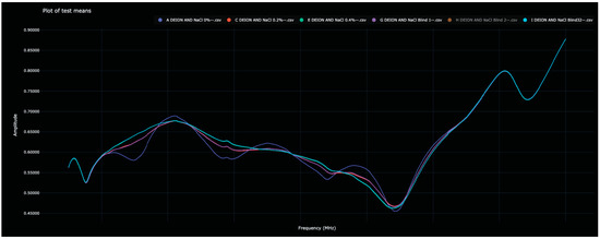 For each solution, data were collected on a continuous basis, using sweeps across the 1500 MHz–3000 MHz range at 0.2 MHz intervals, collecting values at 7501 frequencies. A full sweep of these frequencies took approximately 22.7 s, followed by a one-second pause between sweeps. A total of 10 sweeps were performed on each analyte.
