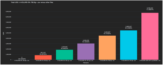 At the same time, the distance between a scan of the 0% solution in the training data and a second scan of the same solution in the test data was 33,157 (Table 2). Given an analyte, any other analyte whose distance was less than 33,157 would be indistinguishable from it. Taking a ratio between this and the value that differs by 10,000 ppm, we expect that the resolution limit of this system is about 33,157/864,963 ≅ 0.0383 × 10,000 ppm = 383 ppm. That is, a concentration difference of 383 ppm could be identified, even without repeating measurements or employing any machine learning techniques.