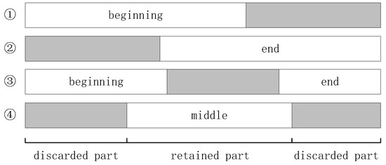 Due to model limitations, hardware constraints, and computing power, models often can only handle text content of limited lengths during training. For example, the BERT [32] model imposes a maximum character length limit of 512 for input data. Prior works on multimodal sentiment classification, such as Yang et al. [33] and Truong et al. [25], have utilized a direct truncation strategy during training. This strategy involves retaining the first part of a text and discarding the rest for texts exceeding a certain length threshold M, as depicted in Figure 3. However, all the traditional truncation methods depicted in Figure 3 have flaws in this application. If long texts are processed using these traditional truncation strategies, important sentiment information contained in the discarded part would be lost, which might not necessarily be unimportant. These traditional truncation strategies are clearly unreasonable. Therefore, we propose a visual distillation module, based on the algorithm [29] from VisdaNet [29], which we renamed as the algorithm, to improve upon the traditional truncation strategies.